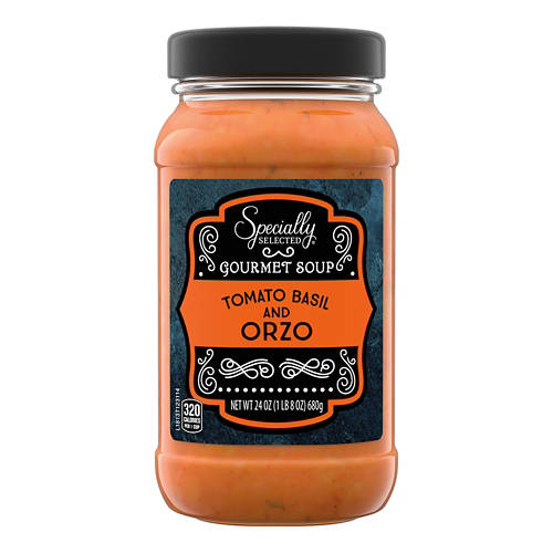 Specially Selected Tomato Basil & Orzo Gourmet Soup is a delightful blend of rich tomatoes, fragrant basil and tender orzo pasta. Perfect for a cozy lunch or dinner, simply heat and serve to enjoy a gourmet meal in minutes. It's a satisfying choice for any time of day. Add a touch of elegance to your dining with Specially Selected Tomato Basil & Orzo Gourmet Soup.