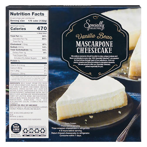 No celebration is complete without this Specially Selected Vanilla Bean Mascarpone Cheesecake! The frozen dessert features layers of sweet vanilla bean and mascarpone cheesecake atop a buttery graham crust. Pair each slice with fresh berries for the perfect treat to share!