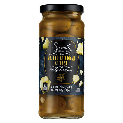 Specially Selected White Cheddar Stuffed Olives are the ultimate addition to your appetizer platter. Each olive is filled with rich, creamy white cheddar cheese, creating a delightful blend of flavors. Perfect for entertaining guests or adding a touch of sophistication to your meals. These olives can be enjoyed on their own or paired with your favorite cheese and charcuterie board. Enjoy the exquisite combination of flavors that are sure to impress.