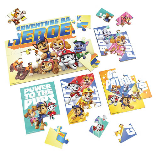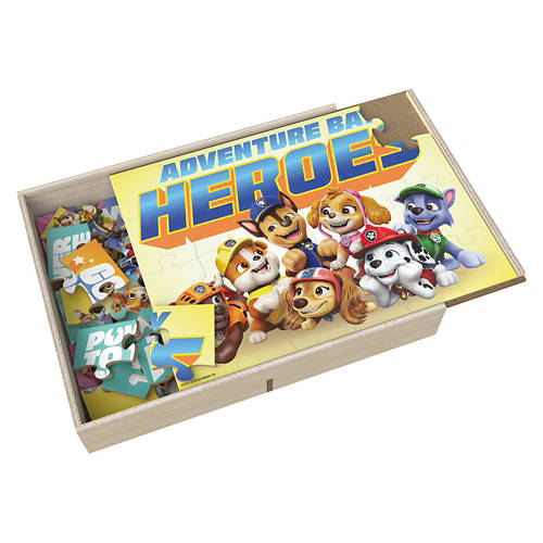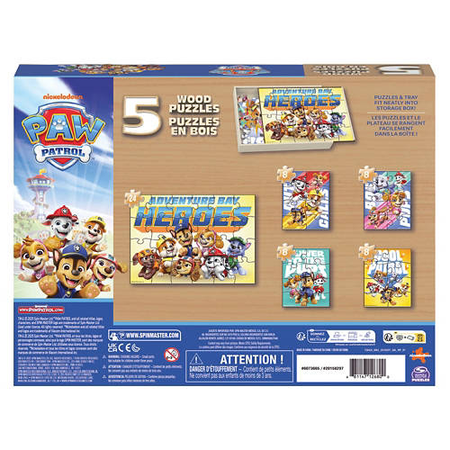 Paw Patrol: Join in on the adventure with the PAW Patrol 5-Pack Wood Puzzles Collection. Featuring cartoon artwork of beloved PAW Patrol characters, this collection offers five delightful puzzles in one box, making it a fun and engaging screenless activity for young ones. With puzzles measuring 11.2"x8.4" and 5.6"x2.3", they are designed for easy handling by little hands. All puzzles are securely stored in a wooden box with a sliding lid, ensuring all pieces are kept safe and organized. The set includes both 8-piece and 24-piece puzzles, allowing children to develop fine motor skills and problem-solving abilities as they progress from simpler to more complex designs. Whether for birthdays, holidays, or everyday gifting, these puzzles offer a thoughtful way to inspire learning and creativity. Spin Master brings the fun of children's entertainment home with a range of kids toys and games, including baby toys, toys for girls, board games, stuffed animals, fidget toys, RC cars, action figures, dolls and more. Get creative with arts and crafts and building toys and take the action to the table with jigsaw puzzles for adults or card games. From gifts for men to baby registry gifts and toddler toys, make gifting a breeze with our diverse catalog of toys for kids.