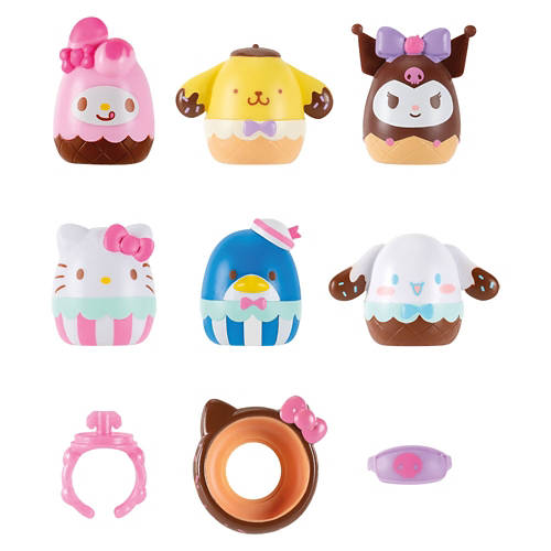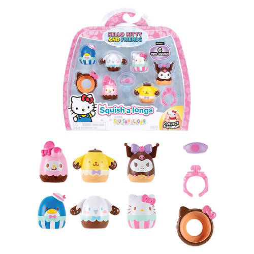 Squish-a-longs Hello Kitty and Friends Boba Mini-Squish + Accessory 6-Pack MINI-SQUISH Squish on the go with Squish-a-longs! These 1-inch plastic collectibles feature your favorite Hello Kitty and Friends characters and make the perfect portable addition to any Squishmallows Squad. Boba Pompompurin, Boba Chococat, Boba Cinnamoroll, Boba My Melody, and Boba Kuromi. SUNDAE BEST This Hello Kitty and Friends Squish-a-longs 6-pack include Ice Cream Hello Kitty, Ice Cream Pompompurin, Ice Cream Tuxedosam, Ice Cream Cinnamoroll, Ice Cream My Melody, and Ice Cream Kuromi. RING ATTACHMENT Attach your Mini-Squish to the included ring accessory for on-the-go fun!