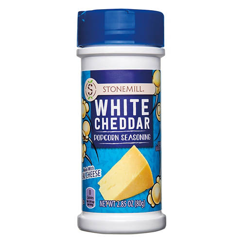 Stonemill White Cheddar Popcorn Seasoning brings rich cheddar flavor to your favorite popcorn. Made with real cheese and zero calories per serving, it's a tasty way to enhance your movie night snacks. Sprinkle it generously on freshly popped corn for a savory treat that's sure to satisfy. Enjoy the bold, cheesy goodness in every bite.
