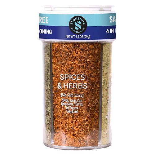 Enhance your dishes with the Stonemill Salt Free 4 in 1 Seasoning, a carefully crafted blend that offers four distinctive salt-free flavors in one handy bottle. This collection features Italian Herbs, bringing the classic, aromatic essence of Italy to your meals with a vibrant mix of flavorful herbs. The Spices & Herbs blend adds a balanced, savory combination that complements a wide range of dishes without the need for salt. Bright and zesty, Lemon & Herbs delivers a refreshing citrus twist combined with subtle herb notes, perfect for enlivening seafood, poultry and salads. Completing the set is Tex Mex Garlic, which infuses your food with a bold and smoky garlic flavor seasoned with traditional Tex Mex spices, ideal for adding a flavorful kick while keeping your cooking salt-free. Together, these four seasonings provide a versatile solution to flavorful cooking.