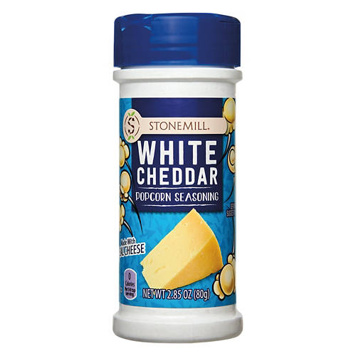 Stonemill White Cheddar Popcorn Seasoning brings rich cheddar flavor to your favorite popcorn. Made with real cheese and zero calories per serving, it's a tasty way to enhance your movie night snacks. Sprinkle it generously on freshly popped corn for a savory treat that's sure to satisfy. Enjoy the bold, cheesy goodness in every bite.