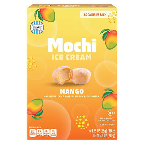 Sundae Shoppe Mango Mochi Ice Cream is a delightful blend of creamy ice cream wrapped in sweet rice dough. Each piece bursts with mango flavor, making it a refreshing dessert. Enjoy it straight from the freezer or let it soften slightly for a gooey texture. At just 80 calories per piece, it's a simple and satisfying way to enjoy a sweet treat.