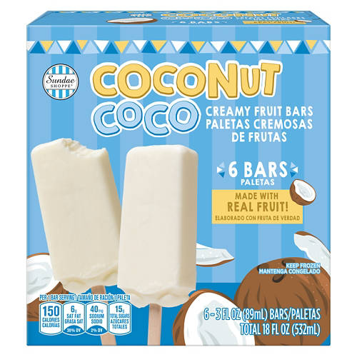 Indulge in Sundae Shoppe Premium Coconut Coco Ice Cream Bars. Each bar offers creamy, coconut flavor made with real fruit. Perfect for a hot summer day, as a dessert after dinner or whenever you're craving something cool and refreshing. Sold in a convenient pack of six, these ice cream bars are an easy way to enjoy a delicious treat. Enjoy a taste of paradise with every bite.