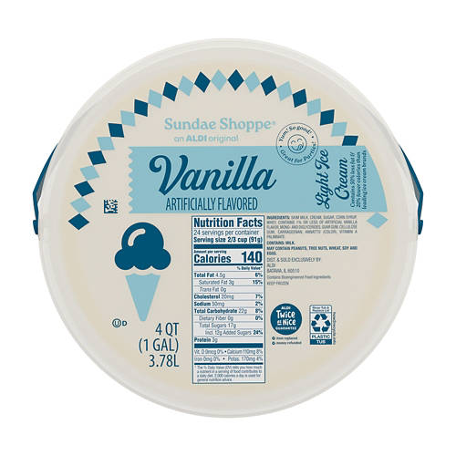 Our Sundae Shoppe Vanilla Flavored Light Ice Cream is big enough to serve many guests at your next party! It's family sized, so it's also big enough to keep everyone in the house satisfied with a delicious vanilla ice cream dessert. At 128 fl oz, or one gallon, this ice cream bucket has no artificial flavors and no high fructose corn syrup. Be sure to keep it frozen so you can serve a scoop of vanilla ice cream with your next slice of cake or piece of pie!