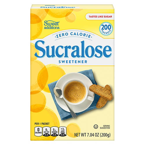 Sweet Additions Sucralose Packets deliver zero-calorie sweetness that tastes like sugar. Each packet is perfect for sweetening your coffee, tea or baking recipes without adding calories. With 200 packets per box, you get a long-lasting supply of sweetener that fits your lifestyle. Add Sweet Additions Sucralose to your favorite beverages and recipes for a delightful taste. Enjoy sweetness without the calories.