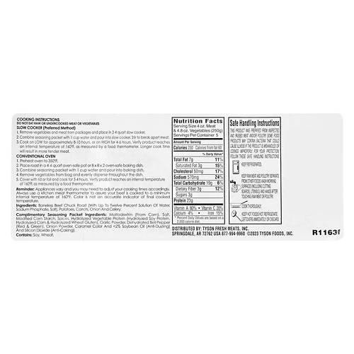 Dinner for the whole family is quick and easy with this Tyson Beef Pot Roast Kit. The kit includes a fresh beef chuck roast, a tasty veggie medley, and a custom seasoning packet. Toss everything in your favorite roasting pan and slow cook it in your oven for a hearty, flavorful, and healthy meal.