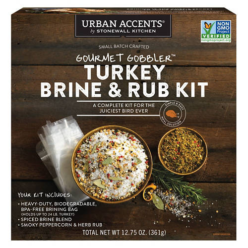 Urban Accents Turkey Brine & Rub Kit is your solution for a juicy and flavorful turkey. This kit includes a heavy-duty biodegradable BPA-free brining bag, a spiced brine blend and a smoky peppercorn & herb rub. Perfect for achieving a succulent bird, it's ideal for holiday feasts or special gatherings. Simple and easy, this kit ensures your turkey will be the star of the meal.