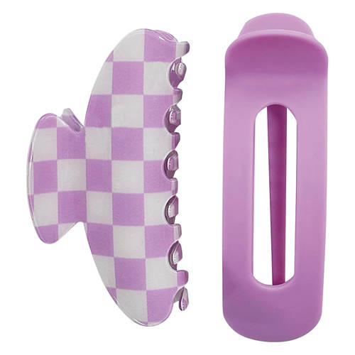 2 Pack Claw Clips, Cream/Lavender Checkered