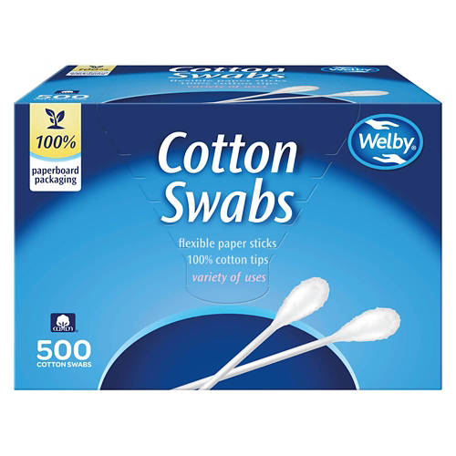 Welby Cotton Swabs offer flexible paper sticks with 100% cotton tips for a variety of uses. Ideal for personal care, makeup application and household cleaning, these swabs are a versatile addition to your daily routine. With 500 swabs in each pack, you’ll have plenty to tackle all your needs. Choose Welby Cotton Swabs for reliable quality and convenience in every use.