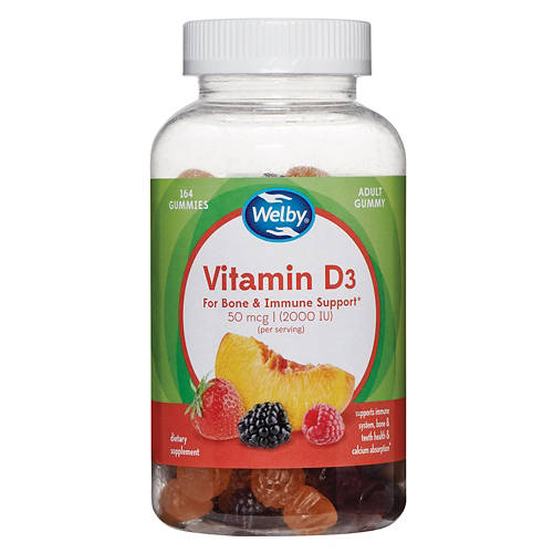 Welby Vitamin D Gummies provide 50 mcg (2000 IU) of Vitamin D3 per serving. These adult gummies support bone and immune health, promoting calcium absorption for strong bones and teeth. With 164 gummies in each bottle, you can maintain your daily Vitamin D intake with ease. Enjoy the fruit flavors while supporting your health.
