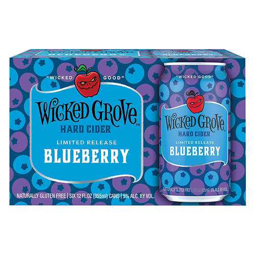 Wicked Grove Blueberry Hard Cider - 6 pack is a refreshing twist on traditional cider. Each can is packed with a burst of blueberry flavor and contains 5% ABV. Perfect for casual gatherings, backyard BBQs or simply unwinding after a long day. Ideal for those who appreciate a fruity, crisp beverage. Enjoy the bold taste of blueberry in every sip.