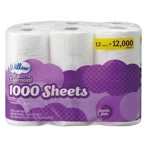 We're always on the lookout for ways to provide more product at the same low price. How we feel about our household essentials is no different. That's why one pack of Willow Bath Tissue comes with 12 septic safe rolls. No need to worry about running out of bath tissue any time soon because this pack has got you covered with 1,000 sheets per roll to provide long lasting value.